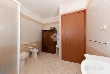 Attraverso un disimpegno si accede alla zona notte, composta da una camera matrimoniale, una camera singola e un bagno finestrato, recentemente rinnovato e dotato di un ampio box doccia.