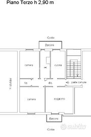 L'immobile apre sul comodo ingresso, proseguento troviamo un'accogliente zona giorno completa di balcone e una cucina abitabile con affaccio sul secondo balcone.