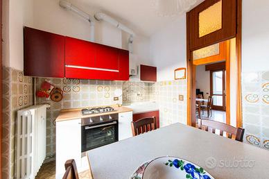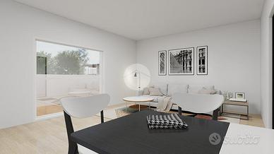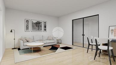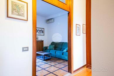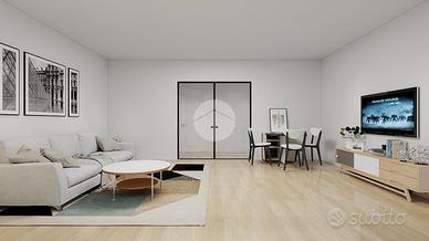 Ingresso in corridoio da quale possiamo accedere ai vari ambienti della casa, subito sulla sinistra troviamo il soggiorno con ampia porta finestra sul primo balcone della soluzione immobiliare, con affaccio tranquillo e piacevole interno al condominio, a seguire, alla destra del corridoio la cucina abitabile con affaccio sul secondo balcone con esposizione opposta.