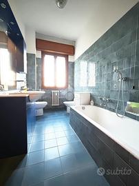 La zona notte, ben distinta, offre due camere da letto di generosa metratura, di cui una con balcone, e un secondo bagno finestrato con vasca.