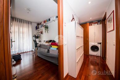 Via Villoresi: Nel cuore di Settimo Milanese, alle porte di Milano, in quartiere tranquillo e residenziale immerso nel verde, a pochi metri dalle Fermate di vari mezzi di superficie (Z260/423/433) che in pochi minuti conducono facilmente alle fermate della metropolitana M1 MOLINO DORINO, M1 BISCEGLIE ed M5 SAN SIRO STADIO e di conseguenza, in meno di 30 minuti al centro della città, oltre che in posizione strategica per l'accesso alle varie arterie tangenziali - autostradali; proponiamo nell' ESCLUSIVO contesto del 2012 denominato " I GIARDINI VILLORESI", un AMPIO TRILOCALE trasformabile con DOPPIA ESPOSIZIONE e DUE TERRAZZI, posto al terzo piano con ascensore in stabile fornito di ascensore, portineria full-time, servizio di pulizie settimanale, PANNELLI SOLARI ed area giochi per bambini ad uso esclusivamente residenziale. La zona risulta tranquilla e ben servita, fornita di tutti i servizi di prima necessità come supermercati, farmacie, scuole, poste, bar e ristoranti. Sono molti i comuni che si trovano appena fuori Milano e che sono ben collegati con la city, in cui tra l'altro si può godere di un'ottima qualità della vita. Uno di questi è proprio Settimo Milanese, un comune così vicino alla città, da poterlo paragonare ad un quartiere della stessa Milano. L'appartamento risulta essere così composto: Ingresso che si apre subito sull'ampio soggiorno, molto luminoso grazie alle due porta-finestre che permettono l'acceso al primo terrazzo della proprietà, con affaccio tranquillo e piacevole sul verde condominiale. Grazie alle sue notevoli dimensioni, offre la possibilità di poter collocare diverse soluzioni d'arredo al fine di poter sfruttare a pieno questo ambiente, come una vera e propria estensione della zona giorno. Con esposizione opposta troviamo la cucina abitabile, con accesso al secondo terrazzo, anch'esso con affaccio interno. A seguire, tramite corridoio, accediamo alla zona notte composta da una prima camera da letto matrimoniale con uscita sul mede
