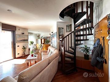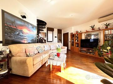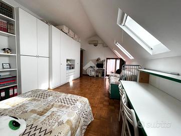 A Seguro, frazione di Settimo MIlanese, proponiamo in vendita elegante tre locali disposto su due livelli al quarto e quinto piano con ascensore, in complesso residenziale con piscina, ideale per chi cerca spazi ben distribuiti e confortevoli. L'ingresso si apre sulla zona giorno ampia e luminosa con accesso al bellissimo balcone di generosa metratura, ideale per momenti di relax all'aperto, e cucina separata. Il piano è completato da un primo bagno finestrato con doccia. Al piano superiore troviamo la zona notte composta da: - Camera matrimoniale con accesso al secondo balcone - Grande camera doppia di circa 25 mq - Secondo bagno finestrato con vasca Il parquet presente in ogni ambiente dona calore ed eleganza all'intera abitazione, inoltre sono presenti tutti gli infissi nuovi in PVC con triplo vetro, velux nuovi nella mansarda, zanzariere e impianto di aria condizionata con pompa di calore. Completano la soluzione box e cantina. Soluzione ideale per famiglie o per chi desidera ambienti ben separati tra zona giorno e notte, in un contesto tranquillo ma comodo per tutti i principali servizi.
