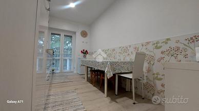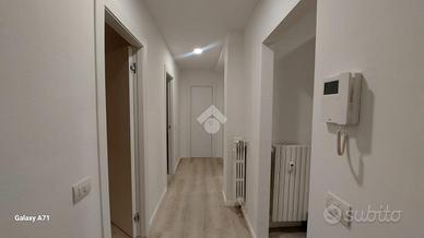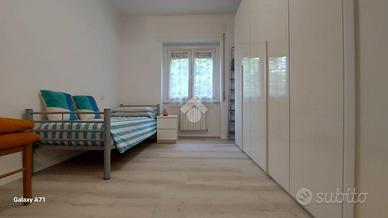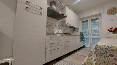 In complesso condominale circondato da ampi spazi verdi e da un generoso parco privato proponiamo soluzione di tre locali finemente ristrutturata. L'appartamento è posto al terzo piano di una palazzina sprovvista di ascensore; la porta d'ingresso apre sul comodo disimpegno che da accesso a tutti gli ambienti; troviamo infatti il generoso soggiorno con affaccio sul primo balcone, la cucina abitabile completa di secondo balcone, il bagno padronale con box doccia, le due camere matrimoniali ed infine un comodo ripostiglio, ideale anche come angolo lavanderia. L'immobile è stato da poco completamente rivisto, i serramenti sono tutti in PVC a triplo vetro, la nuova pavimentazione da continuità a tutti gli ambienti, le porte interne sono state tutte sostituite e l'immobile è già completo di aria condizionata in ogni ambiente. A completare la soluzione il box.