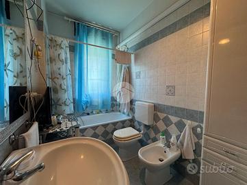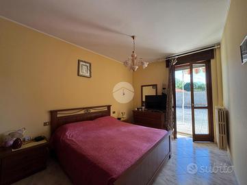 La zona notte comprende una camera matrimoniale con accesso diretto all'ampio terrazzo di pertinenza, una cameretta, anch'essa con affaccio sul terrazzo, e un bagno finestrato dotato di vasca.