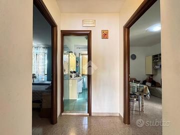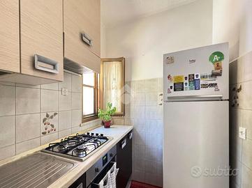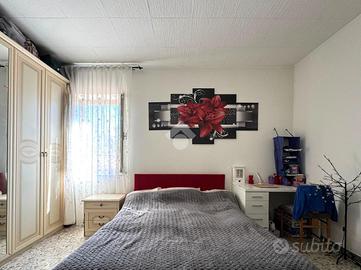 A completare la soluzione: infissi in alluminio e doppio vetro, impianto di condizionamento, entrata indipendente, corte comune con uso esclusivo,riscaldamento autonomo con radiatori e posto auto coperto.