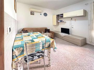 Entrando dalla porta d'ingesso ad accoglierci c'è un piccolo disimpegno che ci accompagna ad un caloroso e luminoso soggiorno con angolo cottura.