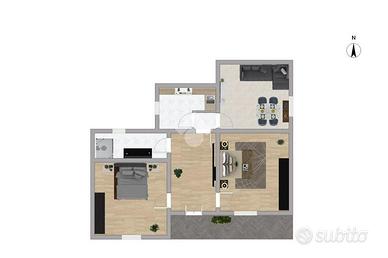 La dispsizione degli spazi è studiata per garantire comfort e praticità, rendendo l'appartamento adatto a diverse esigenze abitative.