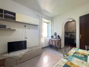 Entrando dalla porta d'ingesso ad accoglierci c'è un piccolo disimpegno che ci accompagna ad un caloroso e luminoso soggiorno con angolo cottura.