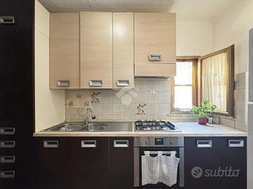 A completare la soluzione: infissi in alluminio e doppio vetro, impianto di condizionamento, entrata indipendente, corte comune con uso esclusivo,riscaldamento autonomo con radiatori e posto auto coperto.