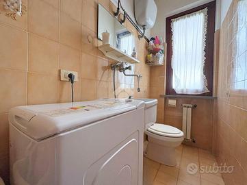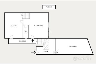 Al primo piano l'abitazione si apre su un luminoso soggiorno, una cucina abitabile perfetta per pranzi e cene, un comodo ripostiglio e un servizio igienico finestrato.