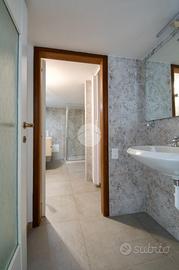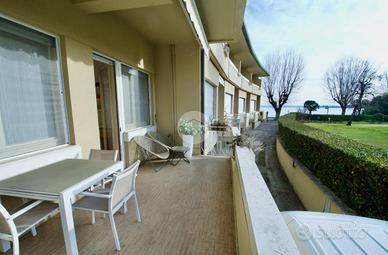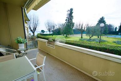All'interno del prestigioso 'Residence Lugana' in zona centrale a Colombare di Sirmione, in contesto fronte lago dotato di piscina e campo da tennis, proponiamo in vendita ampio trilocale con terrazzo vista lago. L'appartamento, sito al piano rialzato è di circa 110 mq e si sviluppa su due livelli. L'accesso avviene dal piano terra, ma per raggiungere il soggiorno è necessario salire 7 gradini, dove si trova una luminosa sala da pranzo/soggiorno, arricchita da una terrazza abitabile con vista laterale sul lago. La cucina, spaziosa e funzionale, è divisa dalla zona giorno. Salendo ulteriormente attraverso una scala aperta di altri 7 gradini, si accede alla zona notte, che offre generosi spazi. Qui si trovano due grandi camere matrimoniali, di cui una con terrazzino. Completa questa zona un grandissimo bagno completamente ristrutturato, composto da un antibagno con lavandino, un piccolo vano per la lavatrice e un ampio bagno dotato di doccia. Inoltre, è presente uno stanzino/ripostiglio che ospita la caldaia a gas metano, ottimizzando così gli spazi. Completa la proprietà un garage singolo privato, venduto separatamente al prezzo di 20.000 Euro. Data la sua posizione privilegiata fronte lago e la vista spettacolare, questa soluzione è un'opportunità rara nel mercato immobiliare di Colombare. Ideale come seconda abitazione o investimento immobiliare.