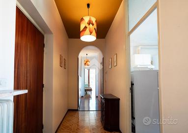 L'ingresso si apre su una luminosa zona giorno, corredata da una cucina abitabile separata e affacciata su un balcone. Un elegante disimpegno introduce alla zona notte, dove trovano spazio due camere da letto matrimoniali di generose dimensioni, entrambe servite da un secondo balcone, oltre a un bagno finestrato completo.