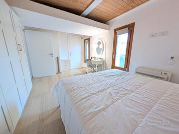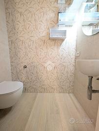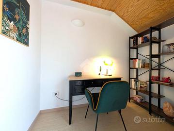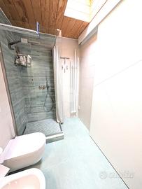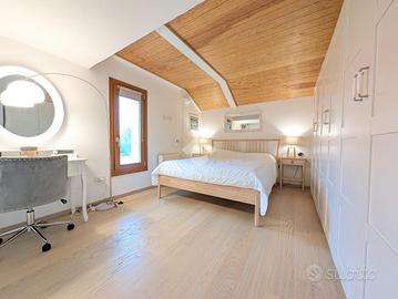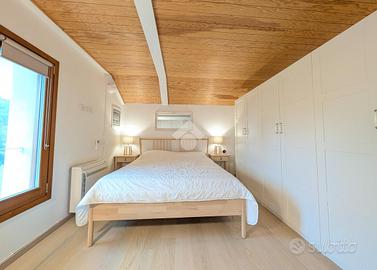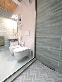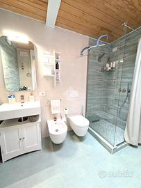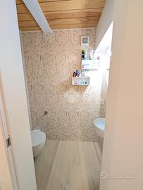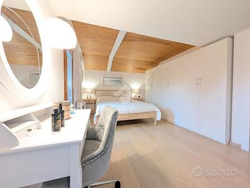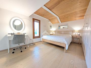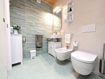 La zona notte comprende due camere da letto matrimoniali di generose dimensioni. Una delle due dispone di un bagno di servizio cieco, dotato di lavabo e moderno wc con funzione igienizzante. Il secondo bagno, completo di tutti i sanitari, è particolarmente luminoso grazie alla presenza di un abbaino che garantisce luce naturale durante tutto il giorno.