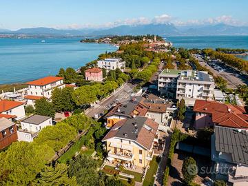 Elegante trilocale arredato a pochi passi dal centro storico di Sirmione, con vista lago e doppio posto auto coperto