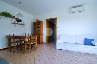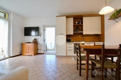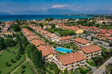 Inserito in un recente e curato residence caratterizzato da ampi spazi verdi e da una piscina condominiale, proponiamo in vendita un elegante appartamento trilocale con doppi servizi situato al primo piano e dotato di terrazzo. L'abitazione si distingue per la sua indipendenza, con ingresso tramite un balcone esclusivo che conduce direttamente al luminoso soggiorno con cucina a vista e accesso al terrazzo. Un funzionale disimpegno conduce alla zona notte, dove troviamo una spaziosa camera matrimoniale, anch'essa servita dal terrazzo e dotata di un pratico bagno privato, oltre a una seconda camera ideale per ospiti o come studio e al bagno principale con doccia. La proprietà include inoltre un comodo box auto situato al piano interrato, un elemento fondamentale data la posizione centrale e la vicinanza strategica al lago e ai principali servizi. L'immobile rappresenta una rara opportunità nel mercato locale, avendo appena beneficiato di una riqualificazione integrale tramite Ecobonus 110 che lo ha portato all'ambita Classe Energetica B. Gli interventi, che hanno incluso la posa del cappotto termico, l'installazione di un sistema di ventilazione meccanica controllata (VMC), una nuova caldaia a condensazione, serramenti di ultima generazione e tende da sole nuove. L'immobile, che sarà consegnato e disponibile a partire da settembre, si presta perfettamente sia come residenza principale sia come investimento immobiliare di alto profilo, con un potenziale elevato per l'inserimento nel circuito delle locazioni turistiche brevi grazie alla disposizione degli spazi e alla presenza dei doppi servizi.
