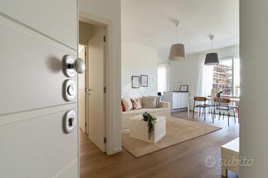 - Porte interne in laminato bianco, che uniscono funzionalità ed estetica, integrandosi armoniosamente con lo stile degli interni.