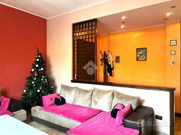 L'appartamento presenta un ingresso che si apre su un disimpegno caratterizzato da un ribassamento del soffitto con faretti, progettato per creare un'atmosfera accogliente. Da qui si accede alla zona giorno, composta da un ampio soggiorno e da una luminosa cucina abitabile.