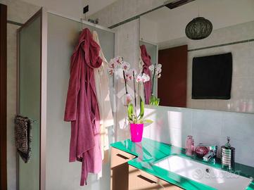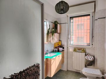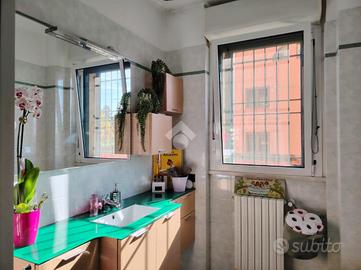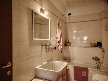 La zona notte, separata da un disimpegno, è silenziosa e riservata; ospita due luminose camere da letto, un bagno finestrato dotato di una pratica doccia ed un secondo bagno cieco con vasca.