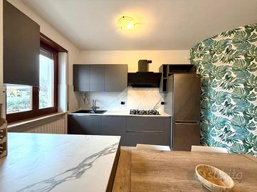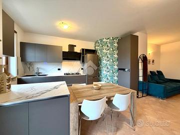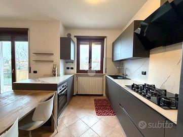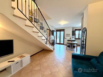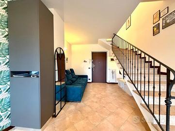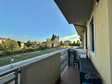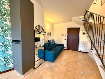 SOMMACAMPAGNA - Proponiamo in vendita un appartamento trilocale su due livelli, ideale per chi cerca comfort e funzionalità, situato al piano primo, all'interno di una via chiusa. L'immobile viene venduto completamente arredato con mobili su misura. Al piano principale, l'appartamento offre un ampio soggiorno con cucina open space che affacciano su uno spazioso balcone, perfetto per momenti di convivialità, un servizio finestrato con doccia e un pratico disimpegno dove è presente una zona lavanderia. Salendo al piano superiore, si trovano una spaziosa camera matrimoniale con sfogo su un terrazzo a tasca, una camera doppia con ulteriore accesso ad un balcone e un bagno finestrato. L'appartamento è dotato di aria condizionata, assicurando un ambiente confortevole in ogni stagione. Completano la proprietà una cantina e un box singolo. Questa soluzione abitativa rappresenta un'opportunità interessante per chi desidera vivere in una zona tranquilla, senza rinunciare alla vicinanza ai principali servizi e collegamenti. Libero da subito.