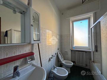 La zona notte, ben disimpegnata, è composta da due camere da letto matrimoniali di generose dimensioni, di cui una con balcone, ideali sia per una famiglia che per chi necessita di uno spazio aggiuntivo da adibire a studio o stanza ospiti. Il bagno è finestrato, completo di box doccia, funzionale e ben arieggiato.