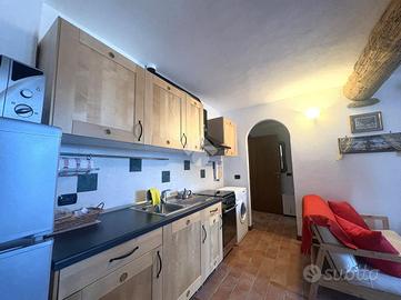 Ad accoglierci alla soluzione troviamo la zona giorno composta da cucina e soggiorno open space con accesso allo spazio esterno ad uso esclusivo.