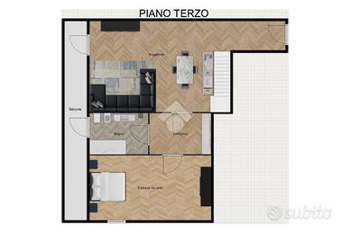SONDRIO - VIA NANI Proponiamo in vendita un appartamento trilocale disposto su due livelli, situato in un quartiere residenziale tranquillo e molto ricercato di Sondrio. L'immobile coniuga comfort, luminosità e funzionalità, ideale per chi cerca una casa accogliente e versatile. L'ingresso conduce direttamente alla zona giorno, caratterizzata da un soggiorno con angolo cottura luminoso e ben organizzato. Dal soggiorno si accede a un balcone che si estende lungo tutta la facciata dell'appartamento, perfetto per godersi momenti di relax all'aria aperta o pranzi all'aperto. La zona notte, separata dalla zona giorno, comprende un bagno finestrato con vasca e una camera matrimoniale di generose dimensioni, entrambe con accesso al balcone. Qui la luce naturale valorizza ogni ambiente, creando un'atmosfera calda e accogliente. Al piano superiore si sviluppa una mansarda open space, versatile e luminosa, completa di cabina armadio e di un secondo bagno con box doccia e velux. Questo livello dispone anche di un ingresso indipendente dal vano scale, garantendo privacy e la possibilità di utilizzare la mansarda come area autonoma, studio o spazio ospiti. Completa la proprietà un ampio box auto doppio, che offre praticità e sicurezza per due veicoli o ulteriore spazio di deposito.