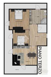 SONDRIO-VIA TEGLIO In un contesto residenziale di pregio proponiamo in vendita un appartamento trilocale moderno, situato in una palazzina di recente costruzione e completo di box auto doppio privato. L'immobile, posto al terzo piano e servito da ascensore, si apre su un ampio disimpegno che introduce gli ambienti principali, progettati per garantire funzionalità e ottima distribuzione degli spazi. La zona giorno è caratterizzata da un luminoso soggiorno con angolo cottura e da due accessi al terrazzo principale, uno spazio ampio e ben sfruttabile, ideale per chi apprezza ambienti esterni fruibili durante la bella stagione. La zona notte comprende due camere da letto matrimoniali, entrambe con uscita sul balcone che abbraccia l'intero appartamento, garantendo aerazione e luce naturale in ogni ambiente. Il bagno, dotato di un comodo box doccia, dispone anch'esso di accesso al balcone. A completare la funzionalità dell'abitazione, un pratico ripostiglio progettato per ospitare lavatrice e asciugatrice. La proprietà comprende un ampio box auto di 21 m², particolarmente comodo per ospitare due veicoli o per creare una zona dedicata a rimessaggio, attrezzature e spazio operativo.