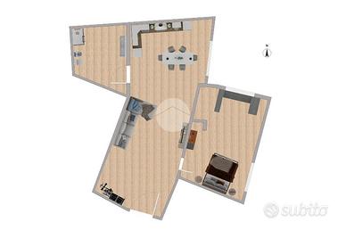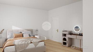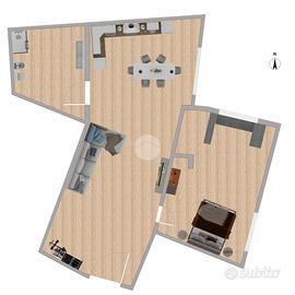 L'ipotesi progettuale prevede la possibilità di creare un bilocale ben organizzato, composto da una camera da letto, un bagno e una zona giorno con cucina e soggiorno in ambiente unico, con esposizione a est che garantisce una buona luminosità nelle ore mattutine.