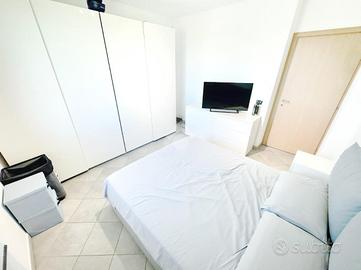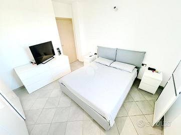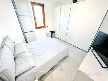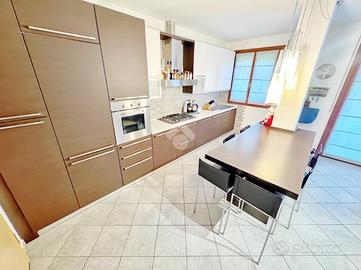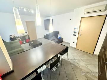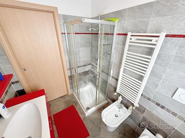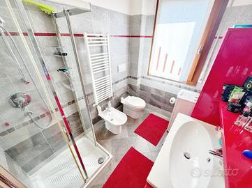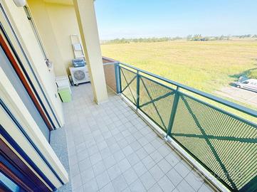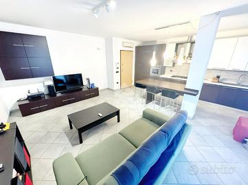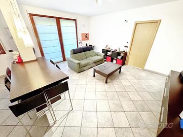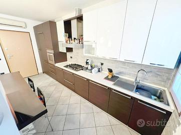 Si tratta di un trilocale con doppia esposizione nord est così composto: zona giorno open space con angolo cottura e balcone loggiato , il disimpegno che ci conduce nella zona notte che comprende: la camera matrimoniale, camera singola e bagno con doccia .