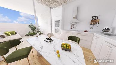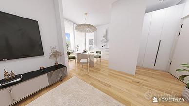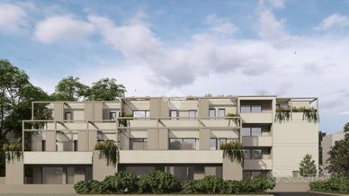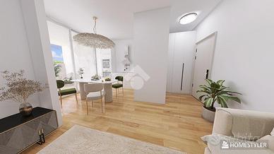La zona giorno si apre su una loggia di 10 mq, ideale per momenti di relax all'aperto. L'edificio, in fase di completamento, presenta una facciata condominiale rasata al civile con cappotto in fibra di vetro, garantendo un'elevata efficienza energetica.