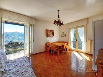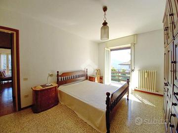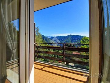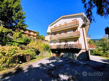 AMPIO TRILOCALE SOLEGGIATO E PANORAMICO DOTATO DI TRE BALCONI, CANTINA E BOX. L'immobile sorge in posizione sopraelevata, poco fuori dal centro, in una decorosa palazzina di sole nove unità dotata di suggestiva vista panoramica e comoda area esterna con giardino condominiale. Collocato al primo piano intermedio e libero su tre lati, con eccellente esposizione ad est-sud-ovest, vanta la presenza di ben tre balconi - uno su ogni lato di affaccio - col vantaggio di potervi accedere sia dal soggiorno che dalle due camere da letto. All'interno presenta ambienti ampi e luminosi, articolati su di un grande disimpegno d'ingresso ed in particolare: il soggiorno dotato di cucinotto separato, due spaziose camere da letto, un pratico ripostiglio ed il bagno; quest'ultimo, provvisto di finestra e vasca, è completo di tutti i sanitari e di attacco lavatrice. Il soggiorno gode di un apprezzabile affaccio angolare caratterizzato dall'accesso a due balconi: quello esposto ad est, che offre una suggestiva vista panoramica aperta sui monti - con le Grigne ed i Corni di Canzo sullo sfondo - e quello pìù grande, rivolto a sud, cui si accede anche dalla camera matrimoniale. L'impianto di riscaldamento è autonomo a metano, dotato di termosifoni in ghisa ed alimentato da una caldaia di recente installazione (2016). Gli infissi sono realizzati in legno, dotati di doppio vetro ed avvolgibili esterne, mentre, l'ingresso, è provvisto di un portoncino blindato. Finiture e dotazioni interne risalgono all'epoca di costruzione (1974) con pavimentazioni originali in ceramica e tipica graniglia. L'abitazione si presenta completamente arredata e conservata in buono stato, così come le aree comuni e gli esterni della palazzina, regolarmente mantenuti e recentemente revisionati. All'unità abitativa sono annessi due accessori di proprietà collocati al piano terra-seminterrato: una cantina di 5 mq ed un ampio box autorimessa di 20 mq, dotato di comodo accesso a livello strada ed area esterna
