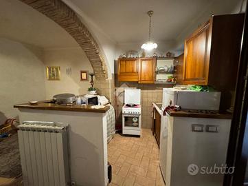 Nello splendido borgo di Collepino, a meno di 10 minuti da Spello e da tutti i servizi, vi presentiamo una proprietà formata da un appartamento composto da soggiorno, sala da pranzo con cucina a vista, camera matrimoniale e bagno, e un monolocale con angolo cottura e bagno. L'immobile include anche una corte esclusiva e un terreno panoramico esclusivo di ca 400 mq con accessorio situato appena fuori il borgo. La proprietà rappresenta un'ottima occasione per chi cerca una casa vacanza per godere della tranquillità e del fascino di un borgo molto caratteristico e la presenza di ben due spazi esterni, non facili da trovare nei centri storici, la rende molto ricercata. In the beautiful village of Collepino, less than 10 minutes from Spello and all amenities, we present you a property consisting of an apartment with a living room, dining room with open kitchen, double bedroom, and bathroom, and a studio apartment with bathroom. The property also includes a courtyard and a private garden of approximately 400 sqm with an outbuilding located just outside the village. The property represents an excellent opportunity for those seeking a holiday home to enjoy the tranquility and charm of a very characteristic borgo, and the presence of two outdoor spaces, not easy to find in historic centers, makes it highly sought-after.