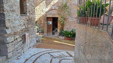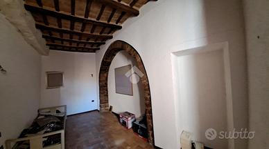 In un vicolo caratteristico, vi presentiamo un appartamento con ingresso esclusivo. Si compone di soggiorno con angolo cottura e camino, sala, camera e bagno al primo piano; al piano terra troviamo invece un locale con accesso indipendente. L'appartamento presenta anche degli elementi caratteristici come le travi e pianelle a vista e degli archi in pietra. In a characteristic alley of the city center, we present you an apartment with an exclusive entrance. It consists of a dining room with kitchenette and fireplace, living room, bedroom and bathroom on the first floor. Cellar with exclusive entrance on the ground floor. The apartment also has some characteristic elements such as exposed beams and tiles and stone arches.