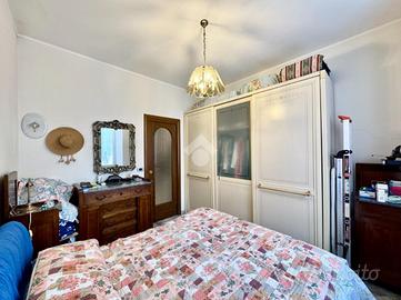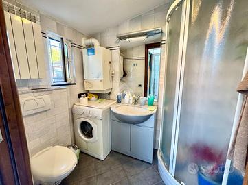 La zona notte è composta da due camere da letto di generose dimensioni, ideali sia per una famiglia sia per ospitare amici. Il bagno finestrato, completo di box doccia, garantisce luminosità e comfort.
