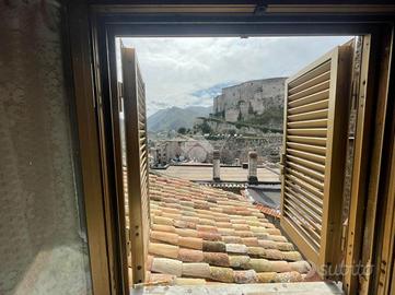 Nel cuore del centro storico proponiamo in vendita caratteristico appartamento composto da salone con angolo cottura, due camere da letto, bagno, cantina e terrazzo con affaccio panoramico. Termoautonomo
