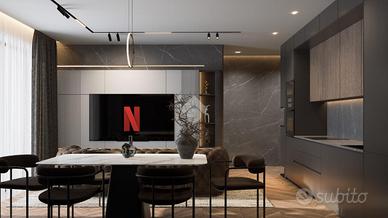 Gli interni si distinguono per ampie metrature e luminosità, con una zona living open space, due camere da letto e doppi accessori. Ogni ambiente è progettato per garantire massimo comfort e funzionalità.