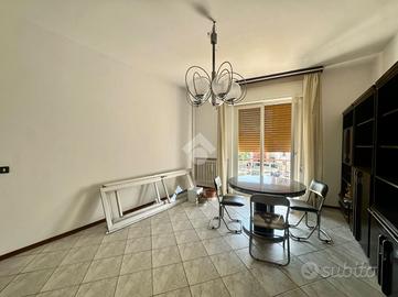 L'abitazione si apre su un accogliente disimpegno che conduce alla zona giorno composta da un'ampia cucina abitabile e un luminoso soggiorno serviti da balcone comunicante.