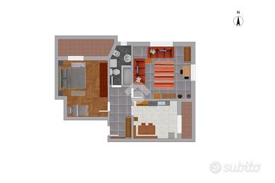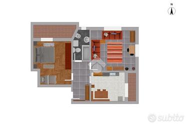 L'appartamento è attualmente composto da una cucina abitabile con accesso diretto a un comodo terrazzo, perfetto per pranzi all'aperto o momenti di relax, un soggiorno di generose dimensioni, una camera da letto matrimoniale con accesso al terrazzo e un bagno finestrato dotato di vasca. La disposizione interna degli spazi permette facilmente di adattare il soggiorno in una seconda camera da letto, trasformando così l'appartamento in un vero e proprio trilocale, ideale anche per famiglie o per chi desidera avere una stanza in più da dedicare agli ospiti o a studio.