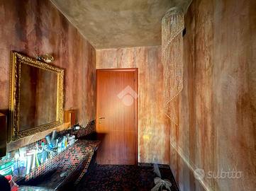 La zona giorno è attualmente divisa dalla cucina da una parete in fibra di vetro, soluzione che dona luminosità e carattere agli ambienti. La casa è inoltre dotata di un moderno impianto Dolby Surround distribuito in tutti i locali, ideale per chi desidera comfort e tecnologia.