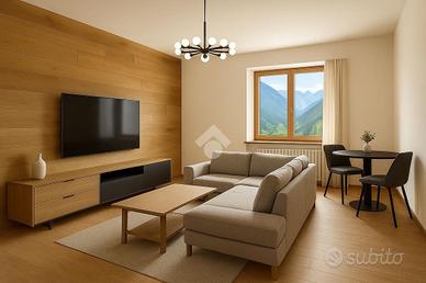 VILLA DALEGNO - VIA MONTE COLEAZZO: A pochi passi dal centro di Ponte di Legno proponiamo in vendita ampio appartamento trilocale di nuova costruzione posto al piano terra con giardino. La soluzione risulta composta da ampia zona giorno con angolo cottura. Tramite il disimpegno raggiungiamo la zona notte composta da due camere da letto e bagno con doccia. Completa la soluzione la cantina e il box auto venduto a parte ad € 30.000,00. Compravendita soggetta ad IVA. PUNTI DI FORZA: posizione comoda,sfogo esterno, vista panoramica.