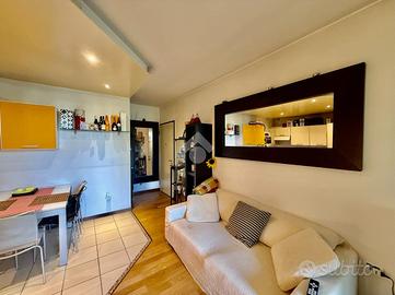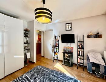 Zona giorno con angolo cottura spazioso con parziale pavimentazione in legno, disimpegno notte, camera matrimoniale, camera singola generosa e bagno finestrato.