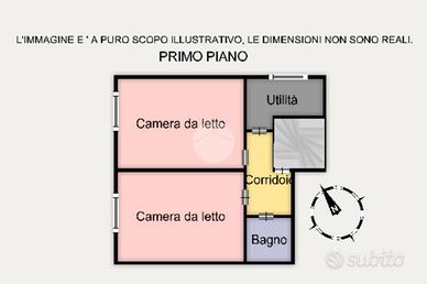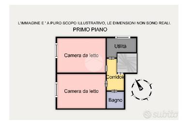 Salendo al primo piano, troviamo la zona notte composta da due camere da letto, un secondo bagno e un comodo ripostiglio.