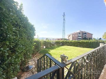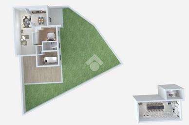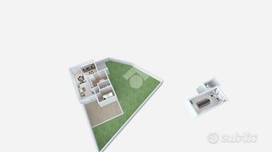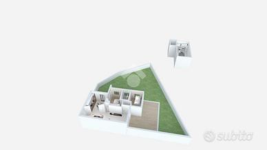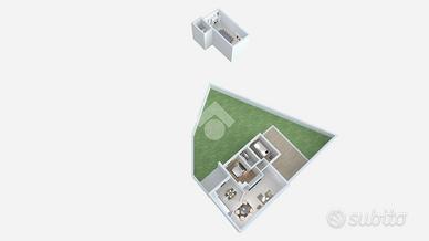 La soluzione si sviluppa: Cucina luminosa e funzionale, si apre su un terrazzino che conduce a un ampio giardino, ideale per momenti di relax all'aperto, accogliente soggiorno dal quale si può accedere a un ampio terrazzo, perfetto per cene estive o per godersi il sole. La zona notte è composta da due camere da letto, ben distribuite, e un bagno; tramite una scala interna accediamo alla taverna con bagno ed infine l'accesso diretto al box auto.