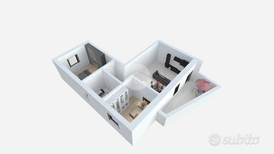 L'appartamento è così composto: due camere da letto accoglienti, un bagno finestrato e un soggiorno luminoso che si apre su un balcone, ideale per momenti di relax all'aperto.