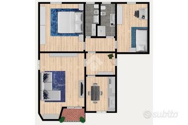 La zona notte, ben separata dalla zona giorno per garantire privacy e tranquillità, ospita due camere da letto: una spaziosa camera matrimoniale, accogliente e ben illuminata, e una seconda stanza, ideale come cameretta, studio o stanza per gli ospiti. Completano l'ambiente due bagni entrambi finestrati, uno dotato di vasca per rilassarsi con un bel bagno caldo e l'altro con doccia, pratico per l'uso quotidiano.
