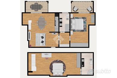 L'appartamento è inoltre dotato di climatizzatori nella camera superiore e nella zona giorno, garantendo un ambiente sempre confortevole in ogni stagione. È presente anche la predisposizione per il camino nel soggiorno, dettaglio che offre la possibilità di creare un'atmosfera ancora più calda ed elegante, perfetta per le serate invernali.