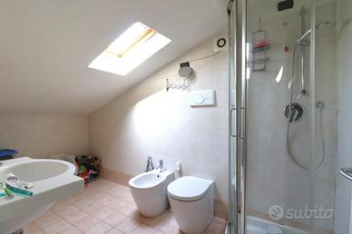 Salendo al piano superiore, attraverso una scala in legno ben rifinita, troviamo una camera matrimoniale molto ampia, dove grazie alla sua metratura generosa si può creare una zona studio o uno spazio dedicato al relax. Anche a questo livello è presente un secondo bagno finestrato, completo di doccia, ideale per garantire privacy e comodità a tutti i membri della famiglia.