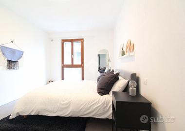 La zona notte si pone in controtendenza, arretrata rispetto alla scena pubblica della casa: due camere principali, regolari nella geometria, pensate per accogliere configurazioni d'arredo mutevoli, immerse nella luce e nel silenzio. La terza stanza si colloca in posizione strategica: al confine tra apertura e riservatezza. Uno spazio ibrido, capace di mutare funzione - studio, stanza degli ospiti, camera da letto - con un gesto architettonico minimo. Un margine abitabile, destinato a interpretare il cambiamento.