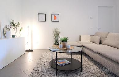 Ogni ambiente è definito da una grammatica sobria: superfici continue, materiali durevoli, altezze calibrate. L'architettura non si impone, ma suggerisce: un modo di vivere fatto di pause, relazioni, possibilità. L'appartamento
