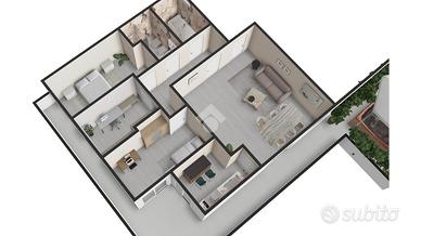 Appartamento cucina abitabile e soggiorno con due camere da letto più studio cucina abitabile e soggiorno terrazzo pare perimetrale e quadrato trasformabile in giardino pensile direttamente al centro di Terni appartamento unico nel suo genere.